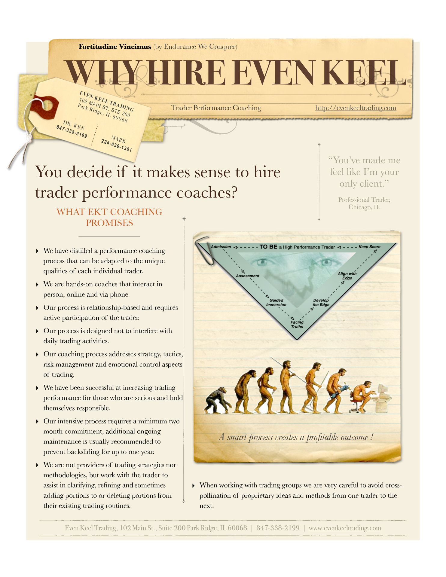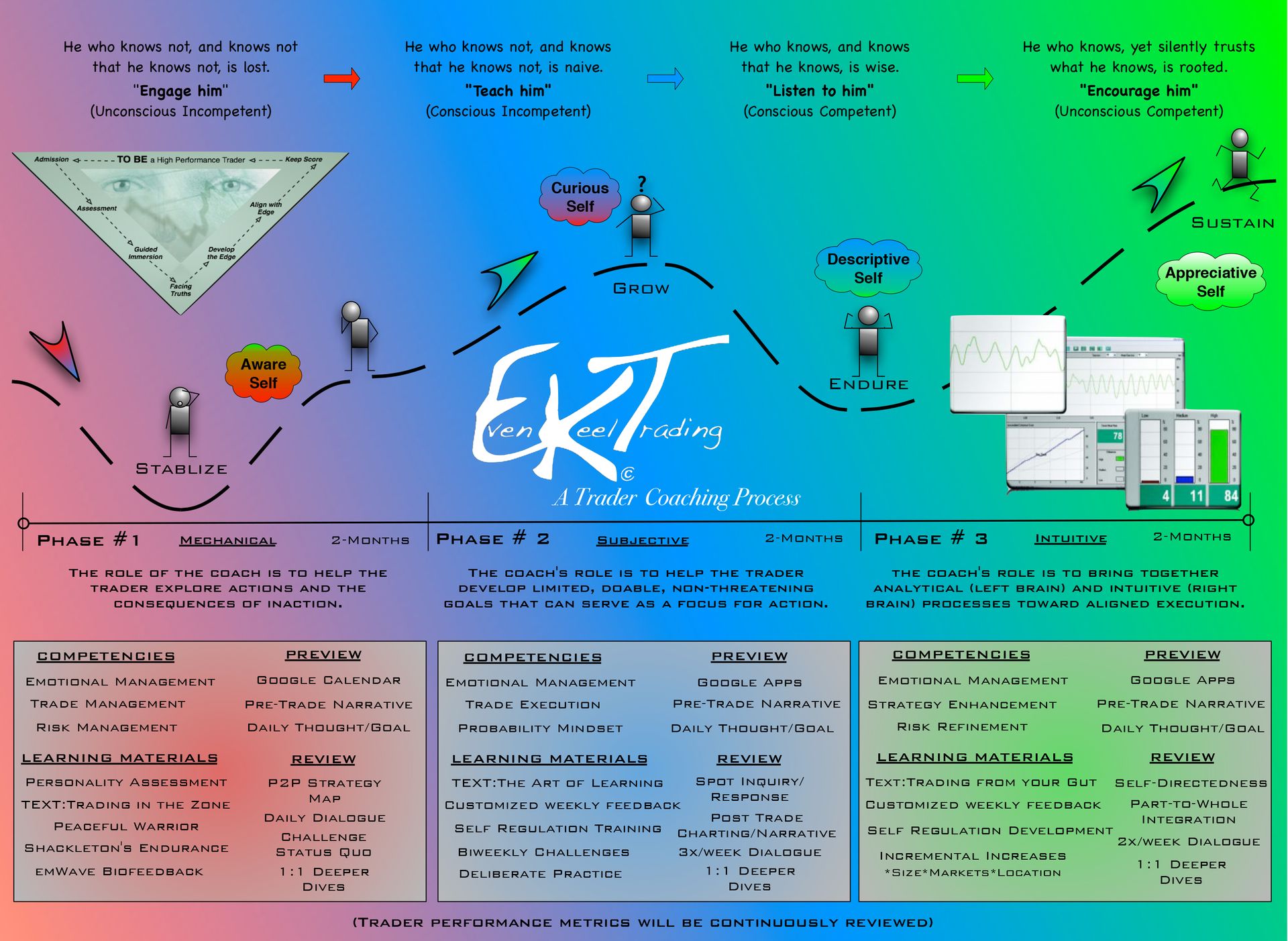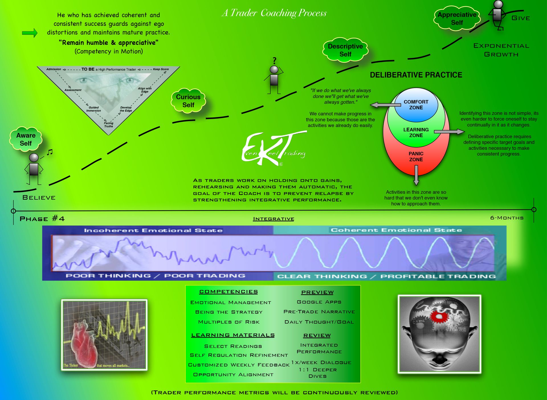 Welcome aboard EKT's coaching process. Achieving an Even~Keel trading style is rooted in learning to appreciate how your mind impacts your trading performance, how you perceive opportunities, and eventually how you navigate market volatility in pursuit of higher performance. Consistently successful traders reach an Even Keel mindset not by magic, but by deep reflection and deliberate practice.